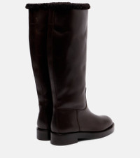 Shearling-trimmed leather knee-high boots