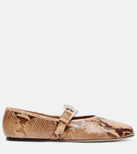 Crafted in Italy from leather, these ballet flats from Paris Texas showcase a snake-effect pattern all over. This design features leather insoles and soles on almond-toe silhouettes. Product Details - Upper: leather - Lining: leather - Sole: leather insole and sole - Toe shape: almond toe - Made in Italy - Includes: shoe box, dust bag - Designer color name: Powder - Item color: brown - Hardware color: silver - Item number: P01078482 Size & Fit - Fits slightly large to size - we recommend trying a half size smaller - European sizes