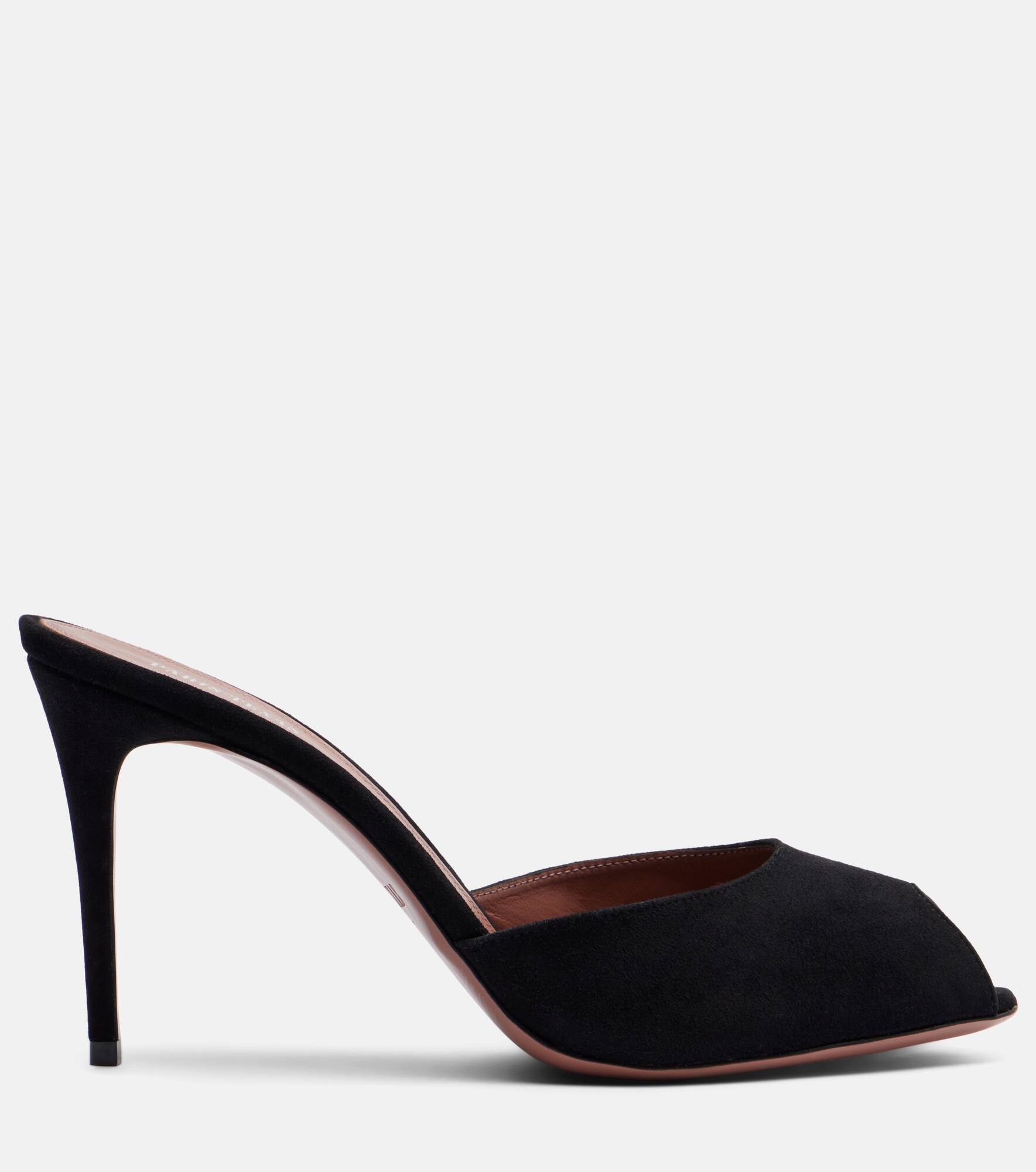 Paris Texas is an Italian shoe label that embodies the idea of contrasts. The Vera mules are Italian-made from black suede and sit atop 85mm stiletto heels. Product Details - Upper: calf leather (suede) - Lining: leather - Sole: leather insole and sole - Color: black - Toe shape: pointed open toe - Made in Italy - Includes: dust bag, shoe box - Designer color name: Black - Item number: P01143873 Size & Fit - True to size - European sizes - 8,5cm-3.5" heel