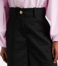 Product Details - Material: 100% cotton - Care instructions: dry clean - Made in Romania - Designer color name: Black - Lining: 100% viscose - Closure: zipper fly, button fastening - Pockets: side slit pockets, back pockets - Item number: P01027890 Size & Fit - True to size - Non-stretchy fabric - Wide-leg - The model seen in the picture is 178cm-5'10" and wearing a size FR 36