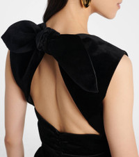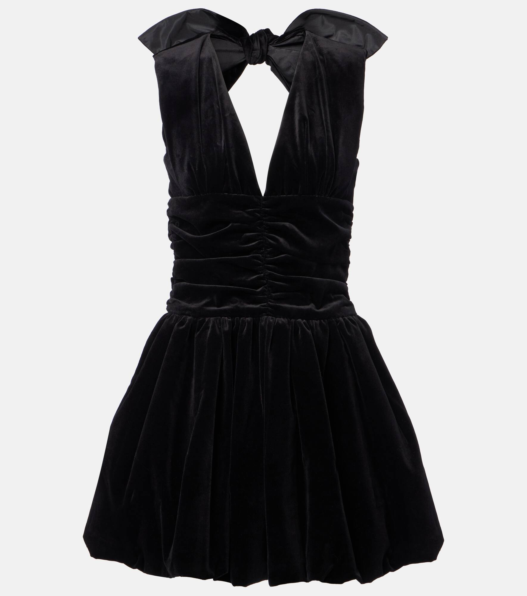 This Patou minidress is crafted from cotton velvet for a sophisticated, Parisian-chic look. The design features a V-neckline, a ribbon drawstring at the open back, a ruched waist, and a balloon skirt with side pockets. Product Details - Material: 100% cotton - Care instructions: dry clean - Made in Poland - Designer color name: Black - Item color: black - Lining: 100% viscose - Collar: V-neck - Self-tie back - Pockets: side slit pockets - Closure: concealed zipper, zipped side, hook fastening - Item number: P01066298 Size & Fit - True to size - Low back - Cinched waist - Non-stretchy fabric - The model seen in the picture is 178cm-5'10" and wearing a size FR 36