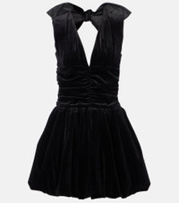 Open-back Ruched Cotton-velvet Mini Dress