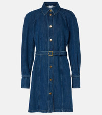 belted organic-denim shirt dress