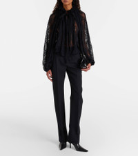 Patou continues to define Parisian style with refined designs. Made from delicate floral lace, this blouse features a voluminous silhouette and an adjustable collar with grosgrain ribbons. Product Details - Material: 100% polyamide - Care instructions: hand wash - Made in Portugal - Designer color name: Black - Item color: black - Material II: 55% cotton, 45% viscose - Cuff: elasticated - Hem: elasticated - Item number: P01066285 Size & Fit - True to size - Off-the-shoulder - Semi-sheer - Designed for a loose fit - Elasticated hem - Non-stretchy fabric - Falls to the hip - The model seen in the picture is 178cm-5'10" and wearing a size XS