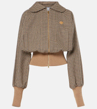 Houndstooth wool-blend flannel bomber jacket
