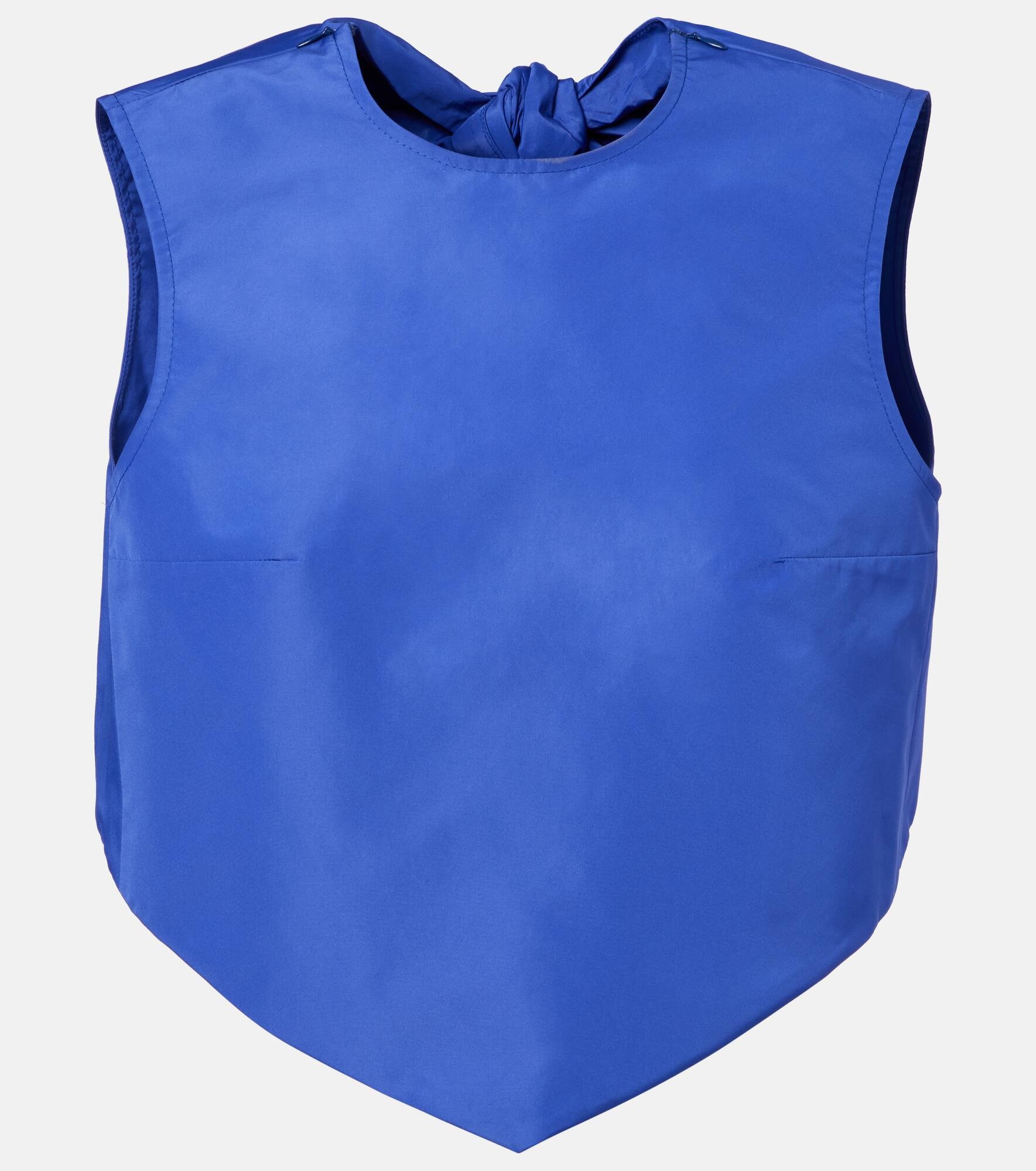 The Slees top from Patou is emblematic of the brand's love of joyful and refined designs with its cropped length and split back with knot fastening. Crafted from faille, it creates a subtle sheen that enhances its elegant silhouette. Product Details - Material: 100% polyester - Care instructions: hand wash - Made in Poland - Designer color name: Orchid Blue - Item color: blue - Item number: P01054444 Size & Fit - True to size - Low back - Designed for a loose fit - Non-stretchy fabric - Cropped - The model seen in the picture is 178cm-5'10" and wearing a size FR 36