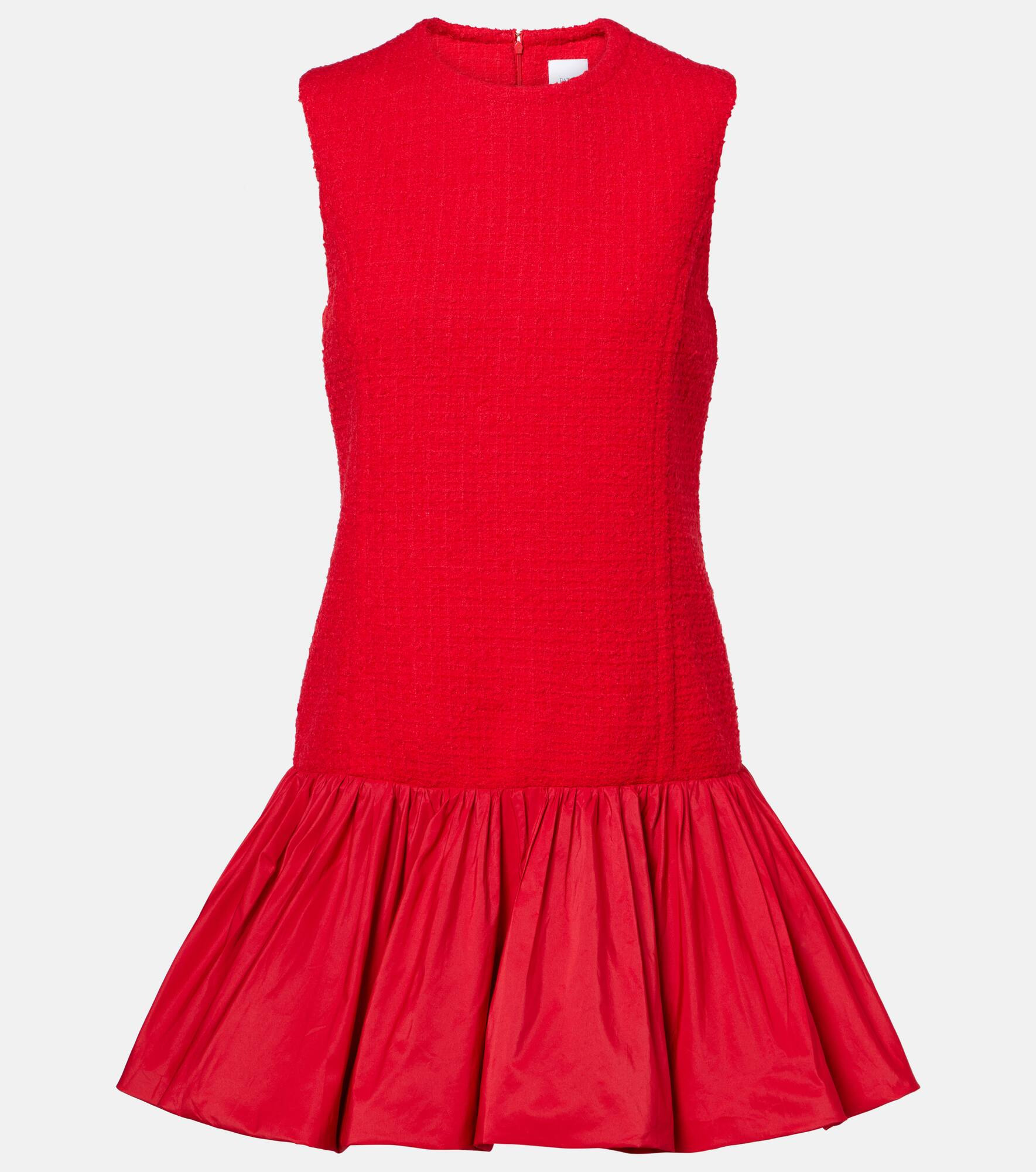 Patou continues to define Parisian style with joyful and refined designs. A play on volume and texture, this minidress combines a wool-blend tweed bodice with a bubble skirt in faille. Product Details - Material: 96% wool, 4% polyamide - Care instructions: dry clean - Made in Poland - Designer color name: Scarlet Red - Item color: red - Lining: 100% viscose - Trim: 100% polyester - Closure: zipped back - Fully lined - Item number: P01066213 Size & Fit - True to size - Ideal fit for larger bust sizes - Straight fit - Non-stretchy fabric - The model seen in the picture is 178cm-5'10" and wearing a size FR 36