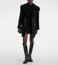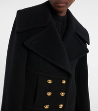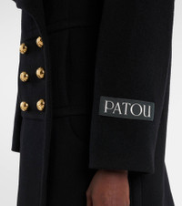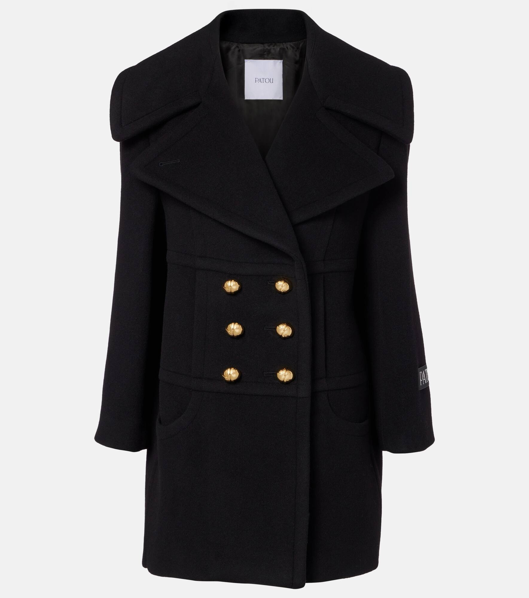 Patou continues to define Parisian style with joyful and refined designs. Crafted from a warm wool blend, this long coat features double-breasted closure with statement gold-tone buttons. Product Details - Material: 72% wool, 25% polyamide, 3% cashmere - Care instructions: dry clean - Made in Romania - Designer color name: Black - Item color: black - Lining: 100% viscose - Details: 100% polyester - Closure: double-breasted (six buttons) - Pockets: side slit pockets - Item number: P01066138 Size & Fit - True to size - Shoulder pad inserts - Designed for a loose fit - Non-stretchy fabric - The model seen in the picture is 178cm-5'10" and wearing a size FR 36