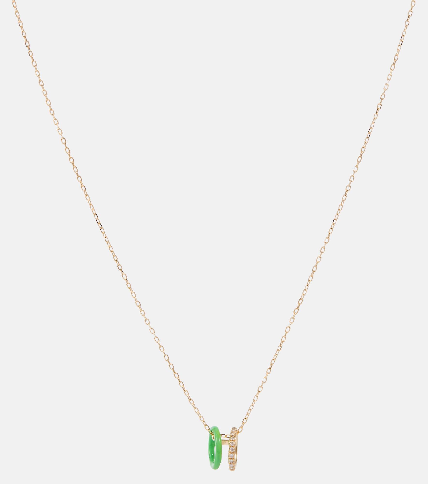 This necklace is one of Persée's more playful fine jewelry designs. The neon-colored enamel hoop makes the dainty 18kt yellow gold chain really pop, while the second pendant has pavé-set diamonds for a sparkling finish. Plus, the chain can be adjusted so it can be worn at any length. Product Details - Material: 18kt yellow gold, enamel - Made in Italy - Stone I: diamond, pavé setting - Closure: lobster-clasp fastening - Item number: P00633625 Size & Fit - Adjustable length - Length when open 41cm-16" - Pendant length 7mm-0.3" - Pendant width 5mm-0.2"