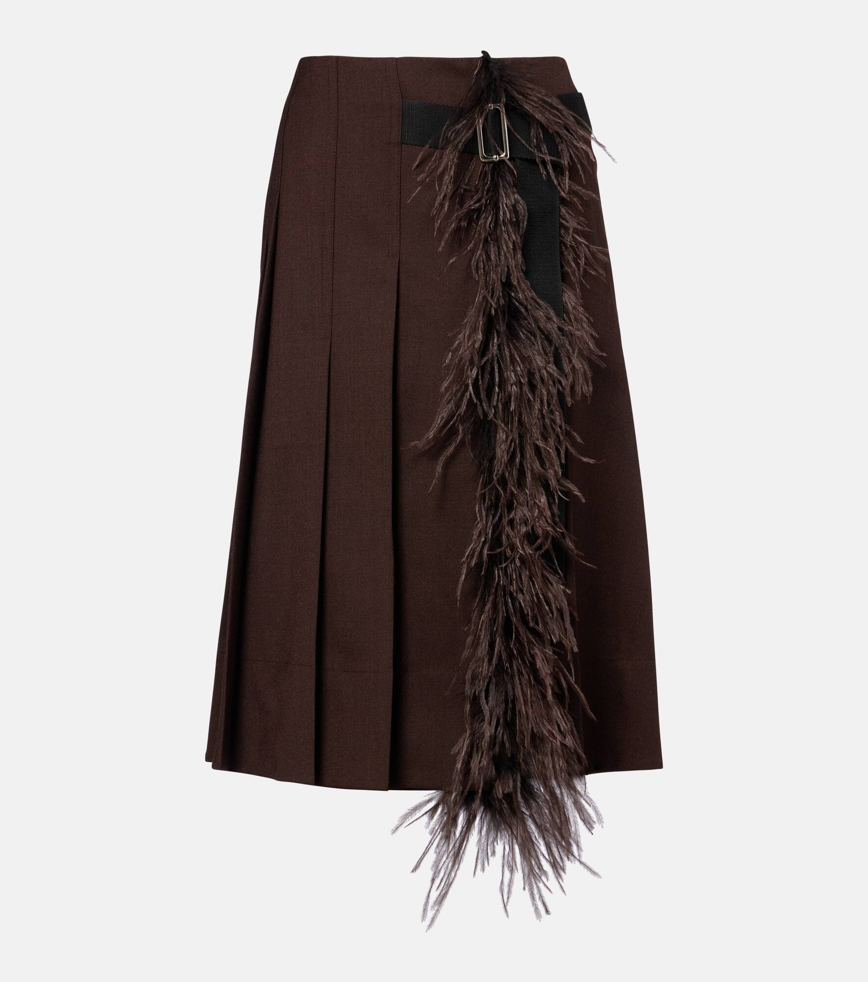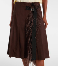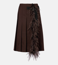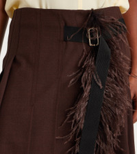 This wrap skirt from Plan C is defined by a melange construction and classic pleated finish. The midi-length design stands out with a contrast belt and matching feather insert on the front. Product Details - Material: 52% polyester, 46% wool, 2% elastane - Care instructions: dry clean - Made in Italy - Designer color name: Brown Melange - Item color: brown - Lining: 100% cotton - Insert: 100% feathers - Closure: buckle fastening, button fastening - Item number: P01088253 Size & Fit - Fits large to size - we recommend trying one size smaller - Adjustable at the waist - Non-stretchy fabric - The model seen in the picture is 178cm-5'10" and wearing a size IT 38