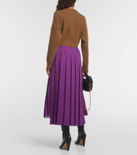 Embody everyday sophistication with Plan C's pleated jersey midi skirt. A poplin hemline detail and elasticated waistband converge, seamlessly combine style and ease for an elegant ensemble option. Product Details - Material: 100% polyester - Care instructions: dry clean - Made in Italy - Designer color name: Aubergine - Lining: 100% cotton - Elasticated waistband - Pockets: side slit pockets - Item number: P00824854 Size & Fit - True to size - Elasticated waist - Mid-weight material - The model seen in the picture is 178cm-5'10" and wearing a size IT 40