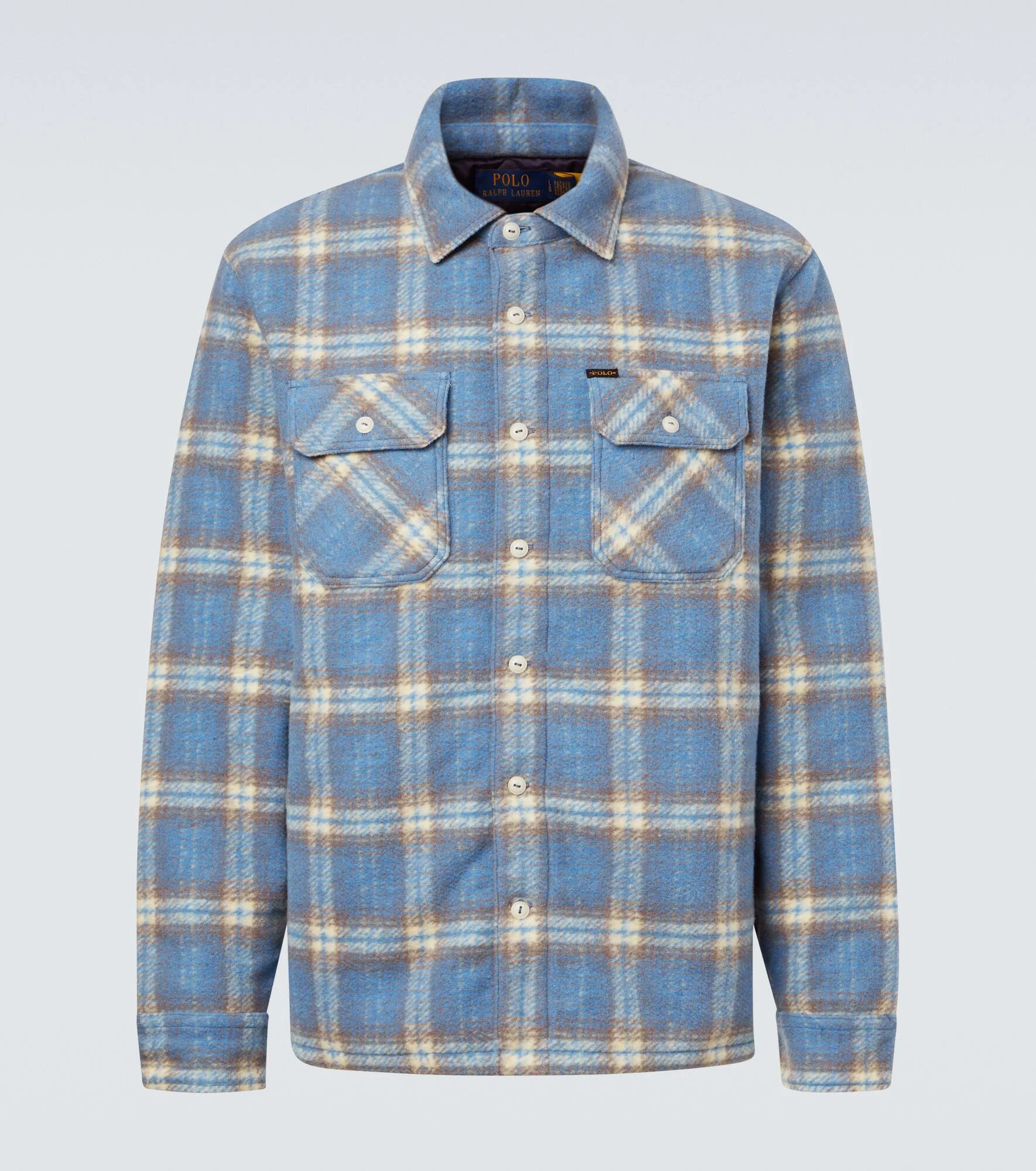 Synonymous with an all-American lifestyle, Polo Ralph Lauren is the pinnacle of preppy and sophisticated dressing. This shirt is crafted from wool-blend flannel and is topped with classic plaid. Product Details - Material: 73% wool, 27% polyester (recycled) - Care instructions: dry clean - Made in Vietnam - Color: blue - Designer color name: Blue Plaid Multi - Item color: multicolor - Lining: 100% cupro - Filling: 100% polyester (recycled) - Collar: classic (Straight point) - Closure: buttoned front - Pockets: flap chest pockets, side slit pockets - Cuff: buttoned - Item number: P01109482 Size & Fit - True to size - Without pleats in the back - Classic fit - Non-stretchy fabric - Falls below the hip - Height of model is 189cm-74.5" and wears a size L
