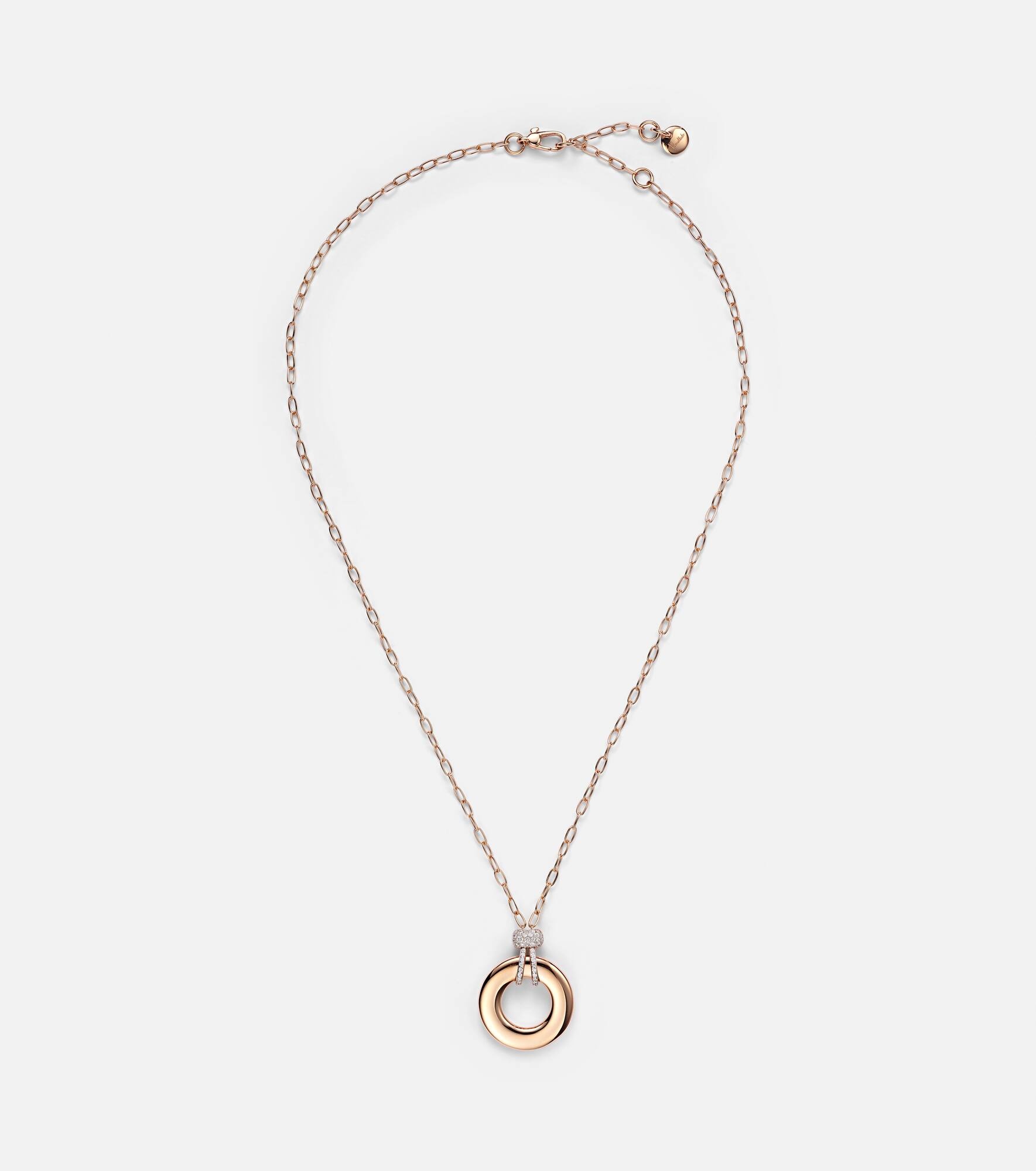 Product Details - Material: 18kt rose gold - Made in Italy - Stone I: diamonds, round-cut, pave setting - Stone I carat total weight (ctw): 0.2 - Closure: lobster-clasp fastening - Includes: box - Item number: P00960779 Size & Fit - Adjustable length - Width 2mm-0.1" - Pendant length 27mm-1.05" - Pendant width 20mm-0.8" - Min. length 40,5cm-16" - Max. length 44cm-17.5"