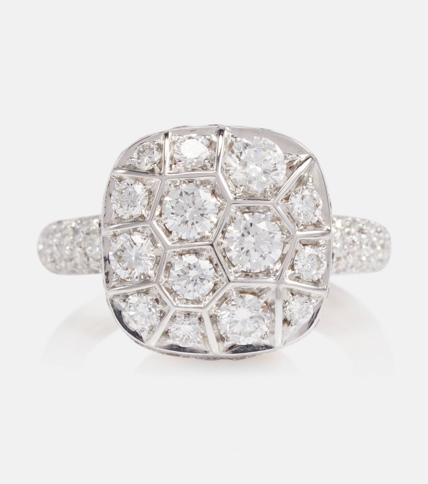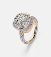 Nudo Solitaire ring is a dazzling gift for yourself or that special someone. This piece is made with Pomellato's signature two-tone design from 18kt rose and white gold and is embellished with 137 white diamonds (3.7 ct). It's perfect to wear on occasions that call for a shining sparkle. Product Details - Material: 18kt rose gold, 18kt white gold - Stone I: white diamonds, round-cut, pavé setting, prong setting - Made in Italy - Designer color name: 0 - Item number: P00761709 Size & Fit - Max. width 15mm-0.6"