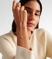 Pomellato reimagines its iconic button and gold chain design with the Pom Pom Dot collection - a modern and playful array of versatile pieces. Expertly crafted from 18kt rose gold, this Pom Pom Dot bracelet showcases a reversible pendant: one side adorned with a pave of 10 round-cut diamonds, the other with a striking 0.9ct turquoise. Product Details - Material: 18kt rose gold - Made in Italy - Item color: rose gold - Stone I: 10 diamonds, round-cut, pave setting, 0ctw - Stone II: 1 turquoise, 0.9ctw - This piece features natural diamonds only - Closure: lobster-clasp fastening - Item number: P01050127 Size & Fit - Adjustable length - Length when open size S 14/15,5cm-5.5/6" - Length when open size L 16/18cm-6.5/7" - Width 1mm-0.05" - Pendant length 10mm-0.4" - Pendant width 13mm-0.5" - Length of size XL+ = 18/20cm-7/8"