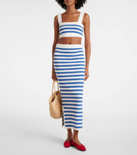Product Details - Material: 78% polyester, 22% viscose - Care instructions: hand wash - Made in China - Designer color name: Blue Stripe - Item color: blue, white - Item number: P01078794 Size & Fit - True to size - Elasticated waist - Stretchy fabric - slit length 31cm-12" - The model seen in the picture is 178cm-5'10" and wearing a size XS