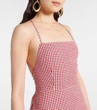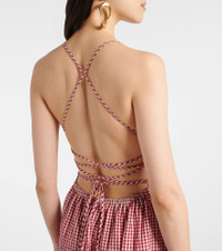 Lori open-back gingham cotton-seersucker maxi dress Red