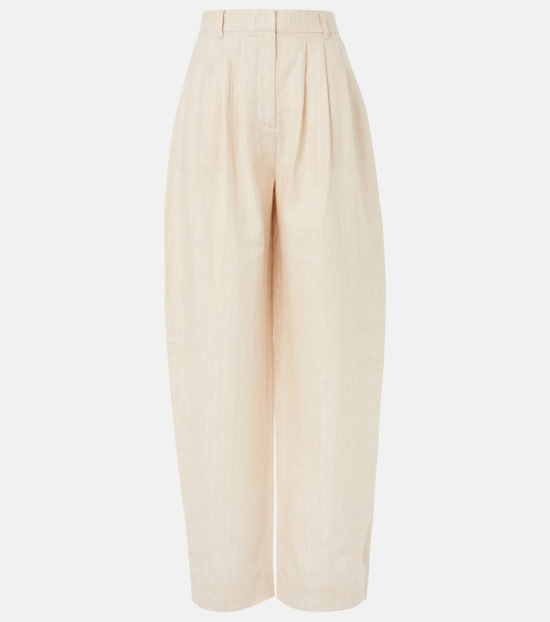 Lucille pinstripe linen barrel-leg pants