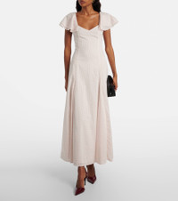 The Marlowe dress from Posse is cut from cotton to a flared silhouette. The maxi-length design features short flutter sleeves, a fitted bodice, and classic polka-dot detailing throughout. Product Details - Material: 100% cotton - Care instructions: hand wash cold - Made in India - Designer color name: Cream & Red Polka Dot - Item color: white, red - Lining: 100% cotton - Collar: V-neck - Closure: concealed zipped side - Item number: P01124625 Size & Fit - True to size - Cinched waist - Non-stretchy fabric - The model seen in the picture is 178cm-5'10" and wearing a size XS
