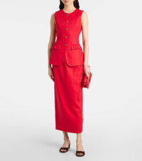 Product Details - Material: 100% linen - Care instructions: dry clean - Made in China - Designer color name: Red - Lining: 100% cotton - Fully lined - Closure: buttoned front - Pockets: flap pockets - Back waist tab - Item number: P01041057 Size & Fit - True to size - Cinched waist - Non-stretchy fabric - Falls below the hip - The model seen in the picture is 178cm-5'10" and wearing a size XS