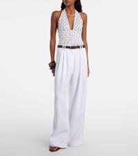 Posse is an ode to effortless elegance and meticulous attention to detail, creating timeless, irreplaceable pieces. Cut from airy linen, the Parker trousers are designed with a flattering high-rise waist and wide-leg silhouette. Product Details - Material: 100% linen - Care instructions: dry clean - Made in China - Color: white - Designer color name: Ivory - Item color: white - Closure: zipper fly, button and hook fastenings - Belt loops - Pockets: welt pockets - Item number: P01124618 Size & Fit - True to size - Non-stretchy fabric - Wide-leg - High-waisted - The model seen in the picture is 178cm-5'10" and wearing a size XS