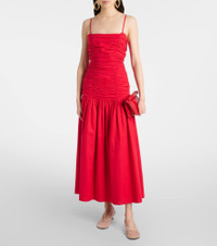 Product Details - Material: 100% cotton - Care instructions: dry clean - Made in China - Designer color name: Ruby - Lining: 100% cotton - Fully lined - Closure: zipped side - Adjustable shoulder straps - Self-tie back - Item number: P01041076 Size & Fit - True to size - Low back - Cinched waist - Elasticated waist - Non-stretchy fabric - The model seen in the picture is 178cm-5'10" and wearing a size XS
