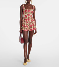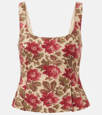 Rosalie shirred floral-print linen peplum top Red