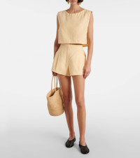 Crafted from pure linen, the Rosalie shorts from Posse showcase a high-waisted style and are cut to a straight silhouette. This design features pleats at the front and side slit pockets. Product Details - Material: 100% linen - Care instructions: dry clean - Made in China - Designer color name: Dusty Citron - Item color: yellow - Lining: 100% cotton - Closure: zipper fly, button and hook fastenings - Pockets: slant pockets - Item number: P01058181 Size & Fit - True to size - Non-stretchy fabric - Straight leg - High-waisted - The model seen in the picture is 178cm-5'10" and wearing a size XS