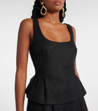 Posse's effortlessly elegant styles are here for the long haul. Made purely from linen, the Rosalie top features a peplum silhouette and shirred back. Product Details - Material: 100% linen - Care instructions: dry clean - Made in China - Designer color name: Black - Lining: 100% cotton - Lining II: 100% linen - Fully lined - Closure: zipped side - Item number: P01041070 Size & Fit - True to size - Elasticated top - Cinched waist - Non-stretchy fabric - Slightly cropped - The model seen in the picture is 178cm-5'10" and wearing a size XS