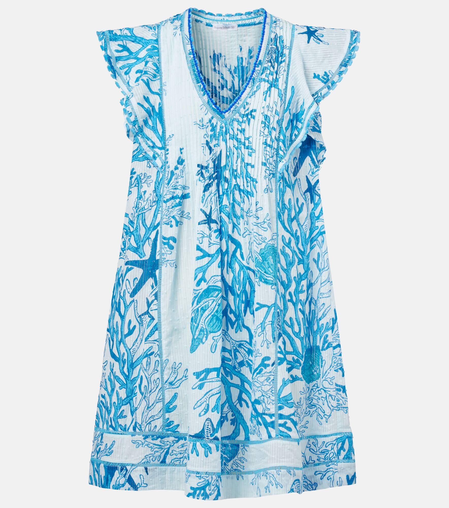 Center your vacation wardrobe around Poupette St Barth's beautifully breezy styles. Made from breathable and lightweight cotton, the Camelia minidress features delicate pleats at the top and is enriched with the brand's sea-inspired pattern for added charm. Product Details - Material: 100% cotton - Care instructions: hand wash - Made in Indonesia - Designer color name: Blue Oceanopolis - Item color: blue - Item number: P01042372 Size & Fit - True to size - Designed for a loose fit - Non-stretchy fabric - The model seen in the picture is 178cm-5'10" and wearing a size XS