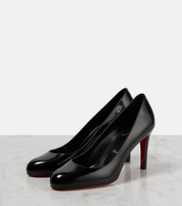 Christian Louboutin's Pumppie pumps have a round-toe silhouette that's timeless and versatile. Elegant low-cut vamps and 85mm stiletto heels characterize the pair, that's made from glossy patent leather and finished with iconic red soles. Product Details - Upper: leather - Lining: leather - Sole: leather insole and sole - Toe shape: almond toe - Made in Italy - Designer color name: Black/Lin Black - Comes with a box - Comes with dust bag - Comes with extra heel tips - Item number: P00827891 Size & Fit - True to size - European sizes - 8,5cm-3.5" heel (size EU 38)