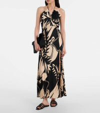 Embrace elegance with this design from Poupette St Barth. The Stella maxi dress is cut to a flowing, halterneck silhouette with a charming all-over print. Product Details - Material: 100% viscose - Care instructions: hand wash - Made in Indonesia - Designer color name: Black Oasis - Item color: black, white - Closure: concealed zipped back - Self-tie neck - Side slits - Item number: P01126452 Size & Fit - True to size - Low back - Cinched waist - Non-stretchy fabric - The model seen in the picture is 178cm-5'10" and wearing a size XS