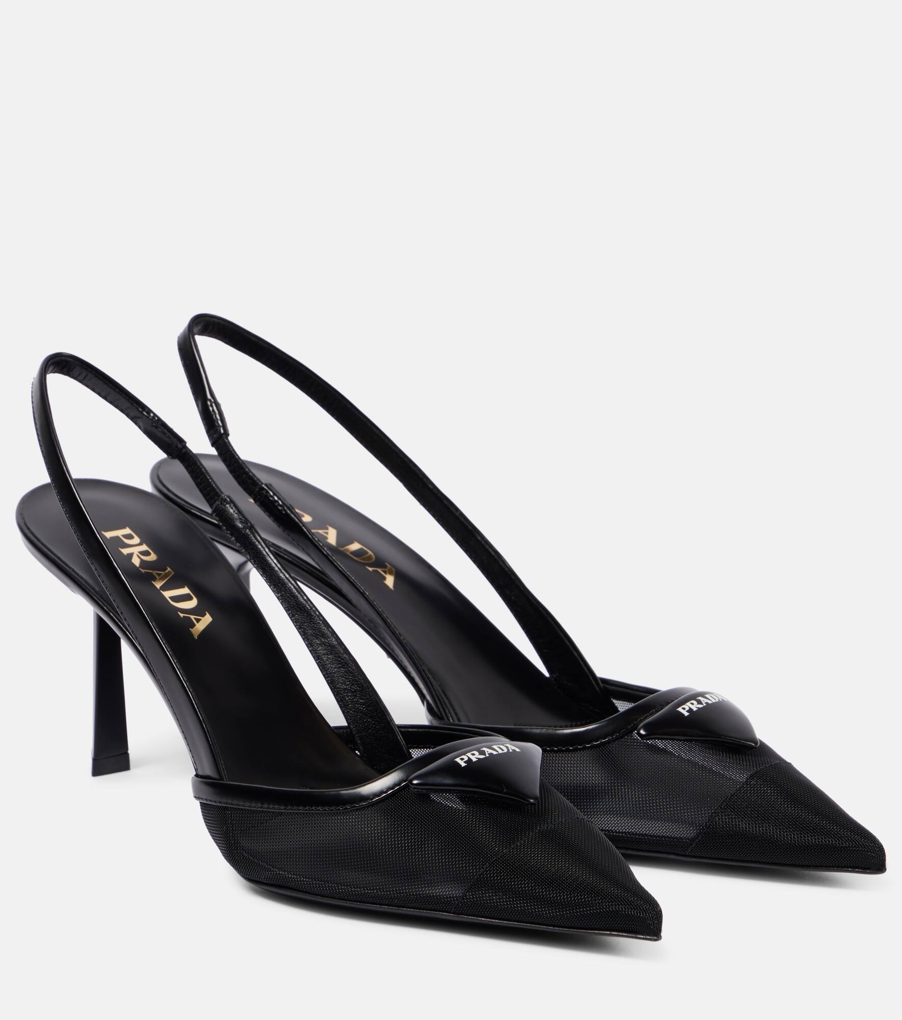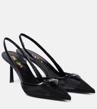 Mesh fabric slingback pumps