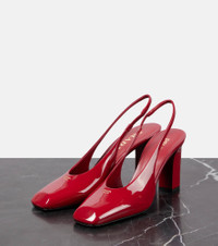 Product Details - Upper: leather - Lining: leather - Sole: leather insole, rubber sole - Toe shape: square toe - Made in Italy - Includes: shoe box - Designer color name: Cherry - Closure: elasticated strap - Item number: P01004984 Size & Fit - True to size - European sizes - 8,5cm-3.5" heel (size EU 38)