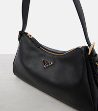 Nodding to '90s minimalism, Prada's Aimee shoulder bag is the ultimate daily sidekick. Crafted from supple leather and defined by soft lines, this Small design comes with an adjustable strap to ensure versatility. Product Details - Material: leather - Lining: leather - Made in Italy - Designer color name: Nero - Closure: zipped top - Internal details: internal zipped pouch, internal slot pocket - Includes: dust bag - Adjustable top handle - Item number: P00997475 Size & Fit - Height 18cm-7" - Max. width 31cm-12" - Max. depth 9cm-3.5" - Min. length shoulder strap 40cm-15.5" - Max. length shoulder strap 60cm-23.5"