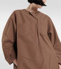 Appearing with a folded placket, creased detailing, and slanted chest pockets, the asymmetric form of this coat spotlights Prada's contemporary vision. This wool-blend design has stacked mid-length sleeves and a lined interior. Product Details - Made in Italy - Lining: 100% viscose, fully lined - Material: 62% polyester, 38% virgin wool - Designer color name: Corteccia - Pockets: side slit pockets, breast pockets - Closure: buttoned front - Care instructions: dry clean - Item number: P00787009 Size & Fit - Fits large to size - we recommend trying one size smaller - Oversized - The model seen in the picture is 178cm-5'10" and wearing a size IT 38
