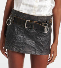 Belted leather miniskirt