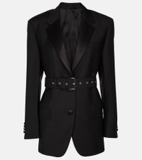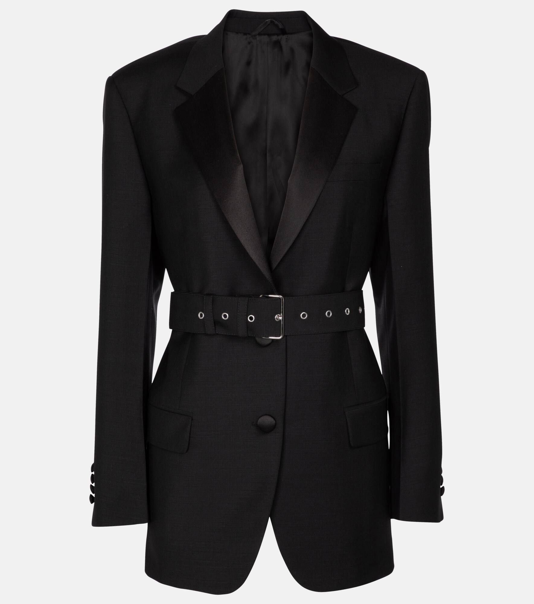 With its luxurious fabrication and considered details, we think this blazer from Prada is the epitome of chic. Tailored from a blend of mohair and wool, this design is lined with a combination of cupro and silk to maintain its structured silhouette. Shoulder pads and a belted waist ensure that this piece will add a distinctive touch to all formal looks. Product Details - Made in Italy - Pockets: breast pocket, flap pockets, internal pockets - Insert: 100% silk - Designer color name: Black - Detachable belt - Buttoned cuffs - Lining: 100% cupro, partially lined - Closure: buttoned front - Shoulder pads - Care instructions: dry clean - Material: 60% mohair, 40% wool - Item number: P00528256 Size & Fit - True to size - Oversized shoulders - Shoulder pad inserts - Loose fit, comes with belt - Falls below the hip - The model seen in the picture is 178cm-5'10" and wearing a size IT 40