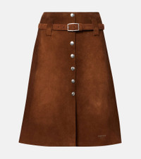 Belted suede midi skirt