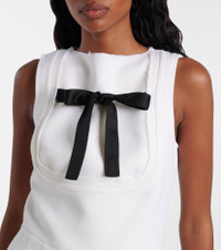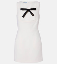 Prada takes Italian heritage into a distinctly modern direction with a streamlined and fashion-forward approach. This dainty minidress is crafted from white virgin wool and is adorned with a contrasting black bow at the chest. Product Details - Material: 100% virgin wool - Care instructions: dry clean - Made in Italy - Designer color name: Bianco - Item color: white, black - Lining: 100% viscose - Closure: invisible zipper - Item number: P01061905 Size & Fit - True to size - Cinched waist - Non-stretchy fabric - The model seen in the picture is 178cm-5'10" and wearing a size IT 40