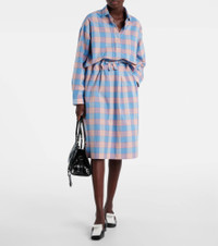 Checked cotton poplin midi skirt