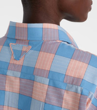Add a vintage-inspired touch to your collection with this shirt from Prada. Made from cotton poplin, the style features an all-over checked pattern and is complete with an elasticated waistline and creased detailing for added character. Product Details - Material: 100% cotton - Care instructions: dry clean - Made in Italy - Designer color name: Pink - Item color: pink, blue - Contains non-textile parts of animal origin - Collar: classic (Straight point) - Closure: buttoned placket - Elasticated waistband - Cuff: buttoned - Item number: P01094003 Size & Fit - True to size - Dropped shoulders - Loose fit, elasticated waist - Elasticated waist - Non-stretchy fabric - Slightly cropped - The model seen in the picture is 178cm-5'10" and wearing a size IT 40