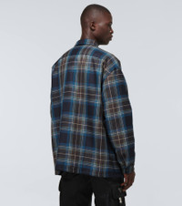 Spun from 100% wool in a blue and green checked design, this padded overshirt from Prada is fully lined for optimal layering and comes in an oversized silhouette. It features two large patch pockets, a snap-buttoned front, and the label's triangle logo emblem at the chest. Product Details - Details: 100% calf leather - Pockets: snap-buttoned pockets - Designer color name: Bleu - Closure: snap-buttoned front - Lining: 100% polyamide, fully lined - Buttoned cuffs - Material: 100% wool - Care instructions: dry clean - Filling: 100% polyamide - Item number: P00581302 Size & Fit - True to size - Dropped shoulders - Oversized - Falls below the hip - The model in the picture is 185cm-6'1" and wearing a size M