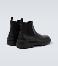 Prada channels Italian heritage through a modern, fashion-forward lens with these streamlined Chelsea ankle boots. Crafted from leather, this pair features a square toe and elasticated sides for a sleek, contemporary finish. Product Details - Upper: calf leather, fabric - Lining: leather - Sole: leather insole, rubber sole - Toe shape: square toe - Made in Italy - Includes: shoe box - Designer color name: Black - Item color: black - Closure: elasticated sides - Item number: P01094076