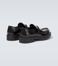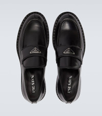 The Chocolate loafers are crafted from black leather and feature a timeless silhouette with polished construction and subtle branding. Prada takes Italian heritage into a distinctly modern direction with a streamlined and fashion-forward approach. Product Details - Upper: leather - Lining: leather - Sole: leather insole, rubber sole - Toe shape: almond toe - Made in the UK - Includes: shoe box - Designer color name: Black - Item color: black - Item number: P01070768 Size & Fit - True to size - UK sizes
