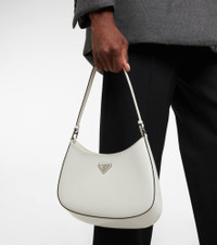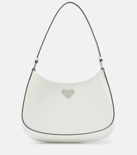 Meet the newest member of the Prada bag family: the Cleo bag. A modern interpretation of a style from the archives, this white brushed-leather design is lined with signature nylon and finished with the iconic triangular emblem. Expect to see it on the arms of fashion's finest this season. Product Details - Material: calf leather - Lining: fabric - Made in Italy - Designer color name: Bianco - Leather shoulder strap - Internal details: internal slot pocket - Hardware color: silver - Closure: magnetic fastening - Includes: dust bag - Color of fastening: silver - Item number: P00526545 Size & Fit - Min. height 18cm-7" - Max. height 21cm-8.5" - Max. width 27cm-10.5" - Max. depth 4cm-1.5" - Length of handle 45cm-17.5"