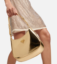 Prada's Cleo Small shoulder bag is a modern interpretation of a style from the brand's archives. It's made from golden brushed leather, lined with signature nylon, and finished with the iconic triangular emblem. Product Details - Color of fastening: gold - Internal details: internal slot pocket, leather lining - Designer color name: Platino 0 - Made in Italy - Comes with dust bag - Closure: magnetic fastening - Material: calf leather - Adjustable shoulder strap - Item number: P00736284 Size & Fit - Max. height 17cm-6.5" - Max. width 22cm-8.5" - Max. depth 3,5cm-1.5" - Min. length of handles 40cm-15.5" - Max. length of handles 50cm-19.5" - Min. length shoulder strap 98cm-38.5" - Max. length shoulder strap 108cm-42.5"
