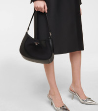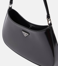 Meet the newest member of the Prada bag family: the Cleo Small bag. A modern interpretation of a style from the archives, this black brushed-leather design is lined with signature nylon and finished with the iconic triangular emblem. Expect to see it on the arms of fashion's finest this season. Product Details - Material: calf leather - Lining: fabric - Made in Italy - Designer color name: Nero - Top handle - Internal details: internal slot pocket - Closure: push-clasp fastening - Color of fastening: silver - Hardware color: silver - Includes: dust bag - Item number: P00526544 Size & Fit - Min. height 18cm-7" - Max. height 21cm-8.5" - Max. width 27cm-10.5" - Max. depth 4cm-1.5" - Length of handle 45cm-17.5"