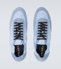 Offering a more sustainable take on a signature fabric, Prada’s Re-Nylon products are made from regenerated ocean plastic waste. The Collapse sneakers are made with this iconic fabric and suede and feature contrasting shoestrings. Product Details - Upper: leather (suede), fabric - Lining: fabric - Sole: leather insole, rubber sole - Toe shape: round toe - Made in Italy - Includes: shoe box, dust bag, extra laces - Designer color name: Light Blue - Item color: blue - Item number: P01083927 Size & Fit - True to size - Half sizes please take the next size up - UK sizes