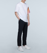 A selection from the exclusive Prada x Mytheresa Men capsule collection, the contrast technical sleeve on this regular-fit white cotton-jersey T-shirt from Prada is digitally printed with a pink and orange ombre pattern inspired by tie-dye designs from the label's Spring/Summer '00 archive. Product Details - exclusive to mytheresa.com - Care instructions: machine wash at 30 degrees - Designer color name: Bianco+Fuxia - Sleeve lining: 100% polyamide - Material: 100% cotton - Item number: P00438859 Size & Fit - True to size - Dropped shoulders - Designed for a loose fit - Falls to the hip - The model in the picture is 185cm-6'1" and wearing a size M